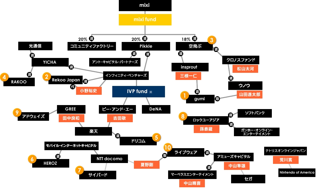 ソーシャルアプリ追記 「美味そうな感じなとこにbetする」という結論で落ち着いたエントリから一週間しか経ってないけど、改めてmixiアプリの提供元上位の相関も加えてみた。オレンジ○で囲まれた数字は今日のmixiアプリ提供元別の順位。VC素早いなぁ。制作が比較的簡単で初期投資も必要としないと思うので、てっとり早く参入できるんだろうなと。それだけに粗悪な作品も多く出回りそう。ユーザーはひまつぶしレベルではそんなにクオリティは問わないのかもしれないが、飽きるのも早そうなのでどんどん新作を供給していかないといけなそう。そうなるとやっぱりアプリ一つあたりのクオリティは下がってくる恐れが。あと旬が短そう。文化になるイメージがない。最後に。ランキング11以下にはわりとグレーなバックグランドの会社もあった。密に寄るのは蝶だけではない。 http://takanori.blog.shinobi.jp/Entry/289/ソーシャルアプリ追記