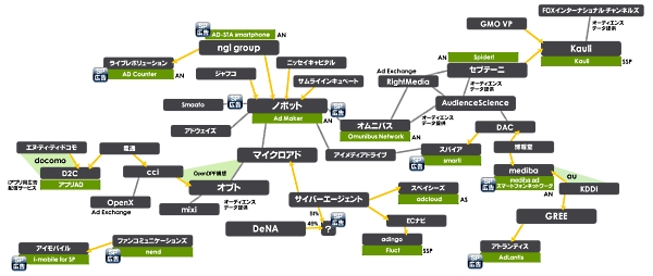 アドテクとかスマフォ広告とかベンチャー投資とか ※クリックするとそこそこ大きくなります。アドネットワークとかアドテクノロジーとかスマートフォン広告とかこんがらがってきたので相関図にしてみました。さらにこんがらがった気がしますが・・・。ざっと作ったので間違いがあれば教えてください。日本の広告を支配する電通と博報堂を両サイドに、真ん中にネット系を配置してみたつもり。ノボットが結構活躍している気がします。adingoもAd Maker使ってるみたいだし。今後さらに再編が進むんだろうね。昨年末からのアドテク銘柄の相次ぐ増資や、先日のイベントでのVCや投資家の躍進など、最近のスタートアップ企業、有力新興企業への投資が凄く熱いような感覚があります。久しぶりにベンチャー投資が元気みたい。個人的には良い事だと思っています。 http://takanori.blog.shinobi.jp/Entry/346/アドテクとかスマフォ広告とかベンチャー投資とか