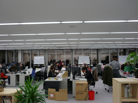 空席あります 渋谷の新オフィスは広いです。池袋のオフィスの1.5倍くらいかな。そう考えるとそんなに広くないかな?と思うんだけど、今度は1フロアなのでその分広く感じるのかもしれません。でもまたすぐに狭くなるんだろうな、と思ったり。練馬の古い雑居ビルからスタートしたこの会社。机を4つ並べたらいっぱいの部屋とサーバの部屋の2部屋でした。サーバの部屋は冬は暖かくて、仮眠をとるには最適でした。すぐにその雑居ビルの並びに最初の移転。最初はガラーンとしてたけど、しまいにはこのように窮屈に。そして池袋にきたのが2年3ヵ月前。実はこの時に練馬から青山の方のオフィスに移転するのが決まりかけていました。骨董通りのあたり。ほぼほぼ決まりかけてたんですが土壇場で白紙に。今思うと池袋で良かったなと。通うのが面倒くさかったしね。池袋移転して半年後くらいに同じビルの下の階も借りました。まだガラガラです。この前後くらいから一気に人員を拡大していったのかな。今までプログラマーかデザイナばかりだったメンバーですが、いろんな得意分野の人達が加わってきて、どんどん「やれる範囲」が広がってきたような気がします。月日が経ってまたもや手狭になりました。池袋最終日。ギュウギュウって程ではないけど、結構満員。というわけで渋谷に移転しました。移転プロジェクト自体は夏くらいから始まっていて、当初は僕なんかも関わっていましたが、途中からはyukaさん、kenichiさん、ruriさんが中心となって進めてくれました。お疲れさまでした。まだ移転した実感は無いんですが、そのうち慣れてくると思います。サムファクメンバーもわりと喜んでくれているのではないかと勝手に推測しています。渋谷はIT業界の中心地ですし、今まで以上に交流も深まっていくんじゃないかと。それよりもサムファクメンバーみんなで池袋時代以上に楽しいモノ、面白いモノ、役に立つサービスを生み出していければと思っています。2009年はどっしりと頑張ろうと思います。まだまだスペースに余裕アリアリですので、一緒に働きませんか?お待ちしています。 http://takanori.blog.shinobi.jp/Entry/199/空席あります